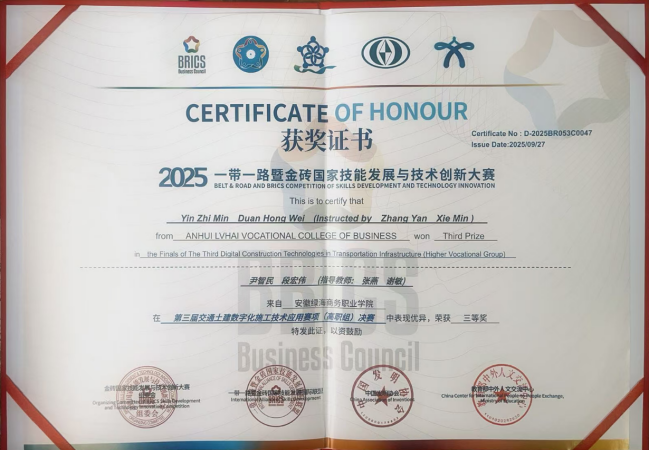 “一带一路”搭台,金砖赛事逐梦——我院学子斩获2025一带一路暨金砖国家技能发展与技术创新大赛全国总决赛三等奖