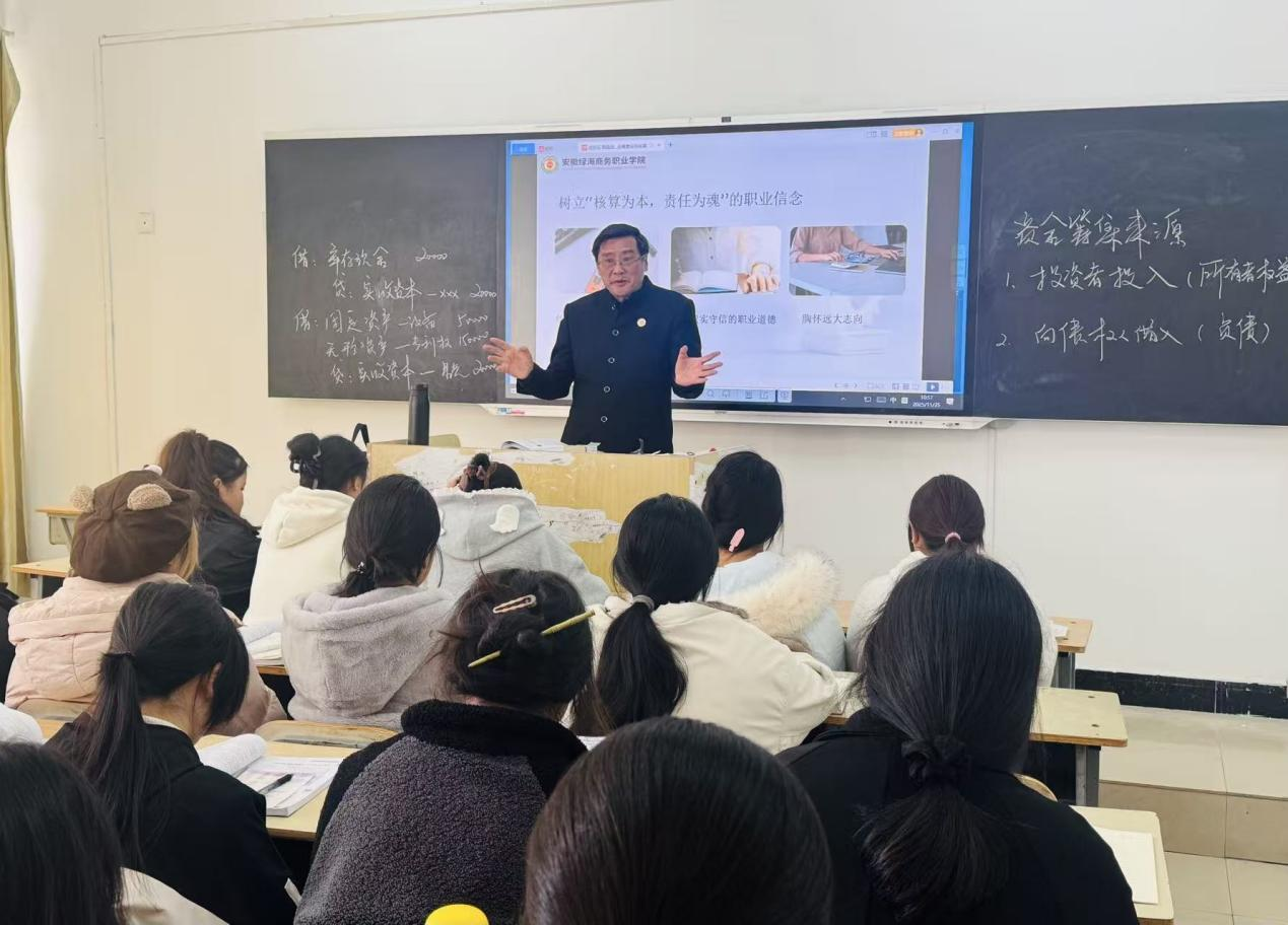 11月25日上午,校长许信旺在副院长陆新文的陪同下,走进大数据与会计251班级,听取了周密老师主讲的《基础会计》课程。周老师授课严谨,条理清晰,围绕重难点深入剖析,并结合案例教学深化学生理解,课堂同学们积极参加互动问答。课后,许校长现场进行了点评,许校长首先肯定了周密老师的课堂教学效果,指出周密老师上课PPT准备充分、课程开始利用“中国制造”案例视频导入新课,并对本节课的重点、难点进行了详细分析,讲解清楚。许校长结合上学期检查时听周密老师会计课程中贷款案例的内容,指出了会计工作在制造业中的重要作用;许校长指出这样通过案例导入新课、对重难点详细分析、加强学生课堂互动练习的授课方法为专业课程教学提供了良好示范,值得推广;同时许校长还肯定周密老师在课程教学中了通过“中国制造”案例自然融入“制造业强国”的思政元素,并且要求同学们在以后工作中要坚守诚信、责任的职业道德,培养学生诚信守责的职业素养;最后,许校长还指出以后的教学中还要注意进一步融入信息化、智能化手段,丰富教学形式,增强课堂的吸引力与实效性。