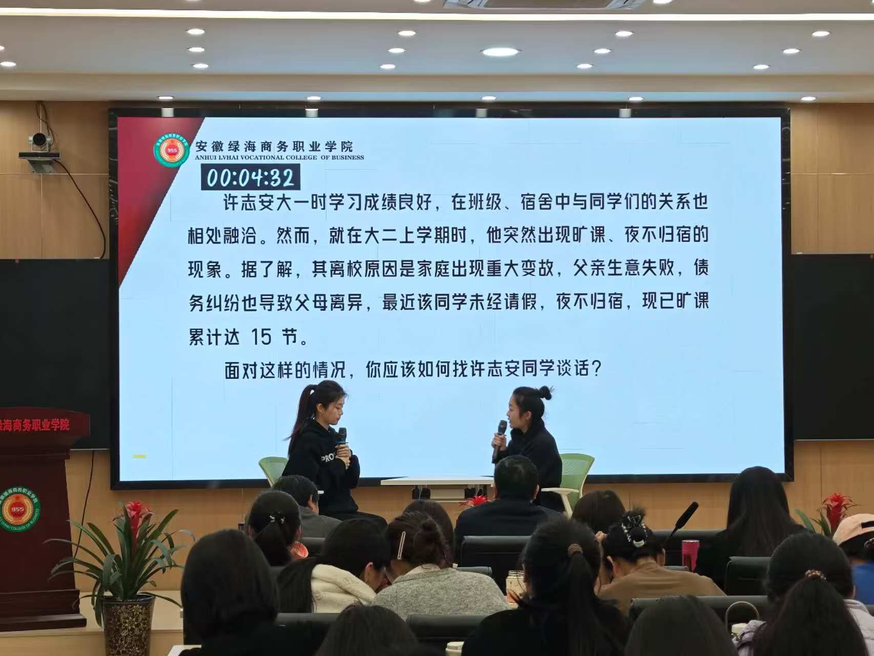 3月24日,安徽绿海商务职业学院工商管理学院专场辅导员素质能力大赛圆满收官。项多伟、程冉冉、王瑜、王禹、张非凡五位辅导员积极参赛,尽显专业风采。