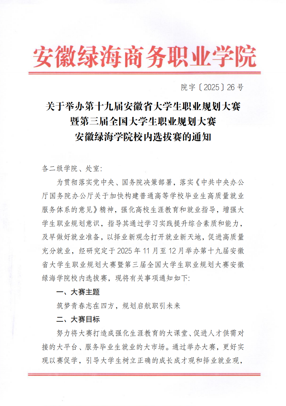 关于举办第十九届安徽省大学生职业规划大赛暨第三届全国大学生职业规划大赛 安徽绿海学院校内选拔赛的通知